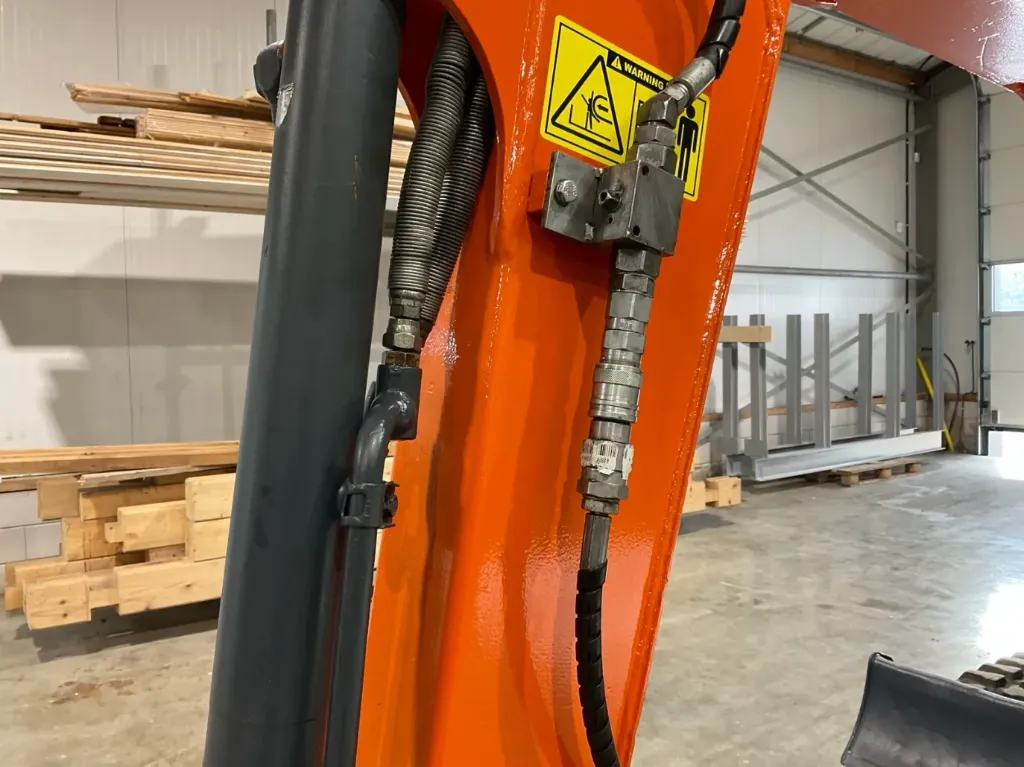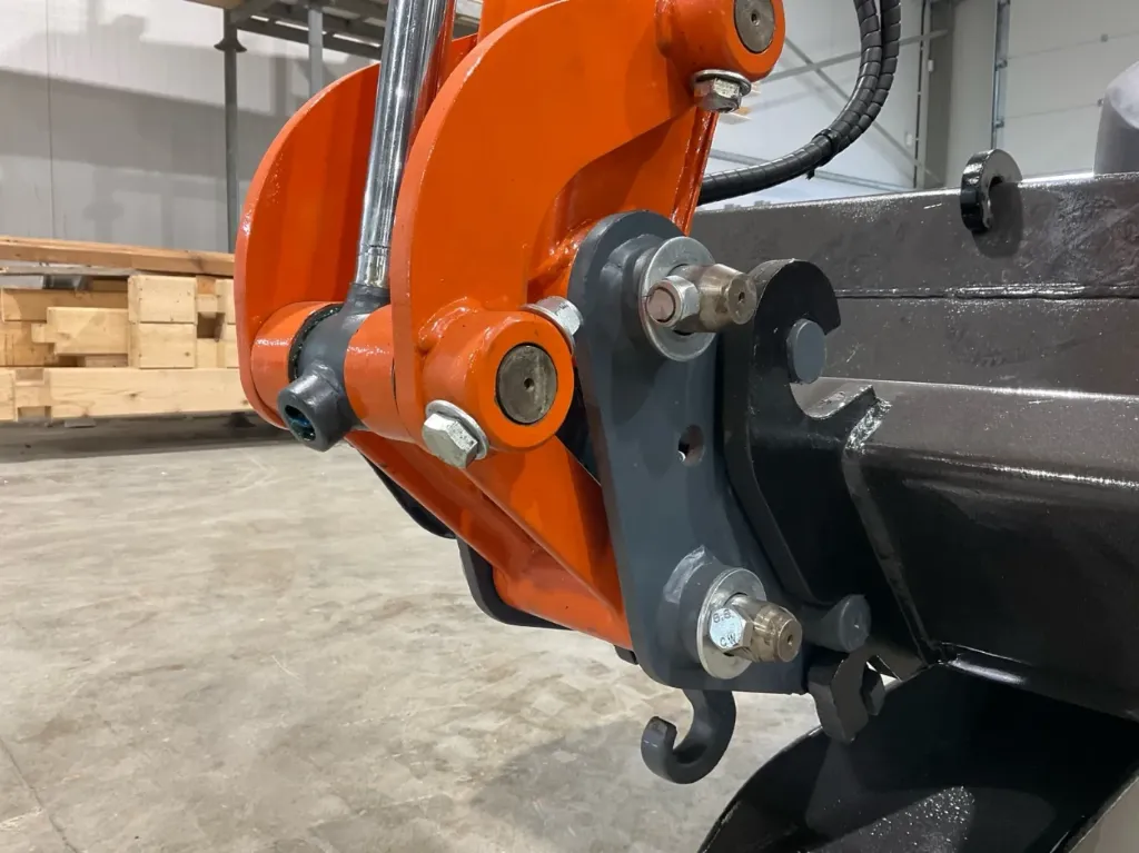 La macchina è equipaggiata con due benne da scavo di diverse larghezze (1.170 mm e 250 mm), che consentono di adattare l’attrezzatura alle varie operazioni. Dispone inoltre di attacco rapido idraulico CW05, funzione idraulica sul braccio, braccio oscillante in due parti per una maggiore flessibilità e di una lama livellatrice per lavori di livellamento o stabilizzazione. La lunghezza del braccio è di 3.200 mm.