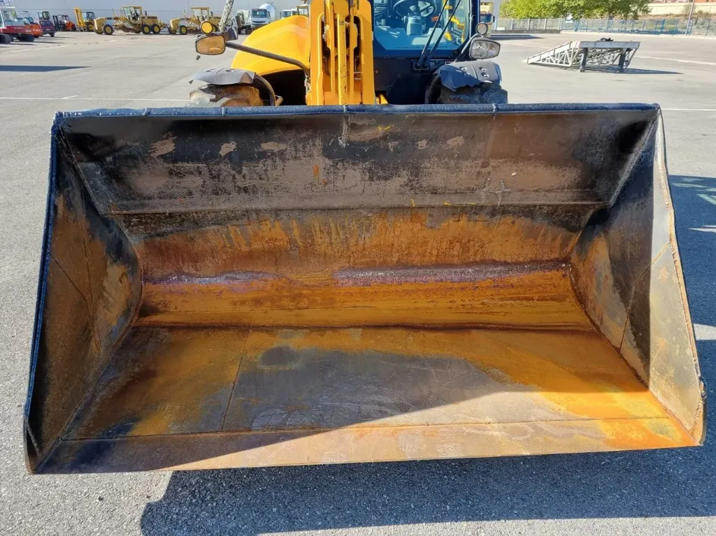 Il sollevatore telescopico è fornito con una benna dalle dimensioni utili di circa 2.260 × 1.200 × 1.000 mm, ideale per lavori di carico, scarico e movimentazione di materiali voluminosi.