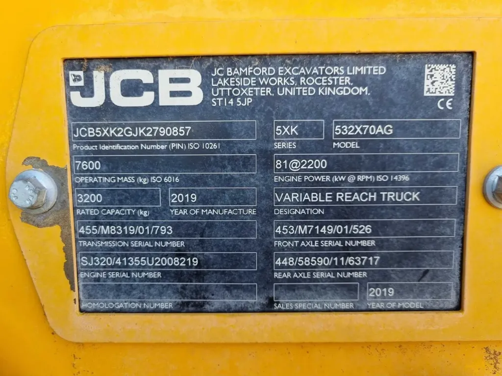 - Numero di serie: JCB5XK2GJK2790857