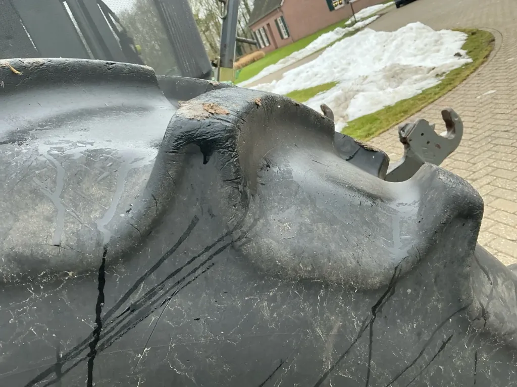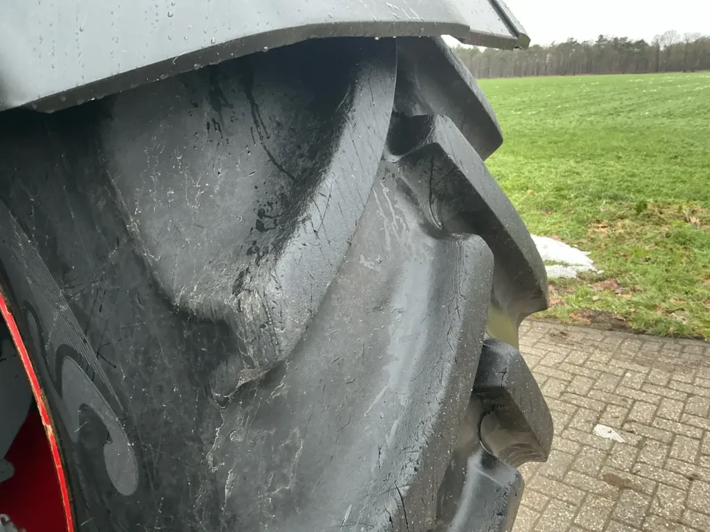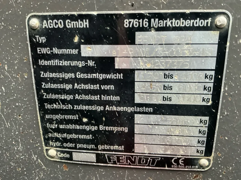 Per quanto riguarda dimensioni e capacità, questo Fendt 924 Vario presenta una lunghezza totale di 5.800 mm, una larghezza di 2.700 mm e un’altezza di 3.100 mm. Il peso a vuoto è compreso tra 9.500 e 10.000 kg, con un peso totale ammesso fino a circa 14.000 kg, sinonimo di robustezza e grande capacità di carico. È equipaggiato con pneumatici anteriori 600/65R34 e posteriori 650/85R38, che garantiscono un’ottima aderenza e una corretta distribuzione del peso.