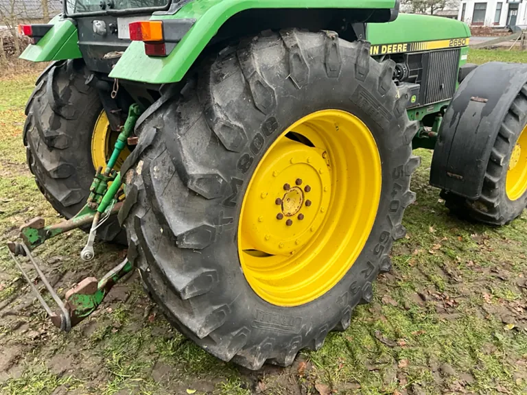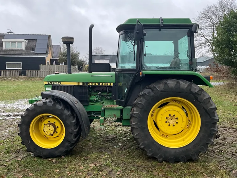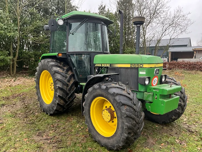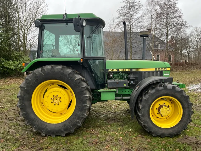 Trattore agricolo John Deere 2650 a quattro ruote motrici del 1990