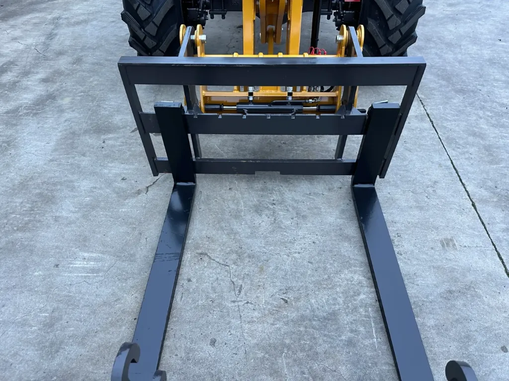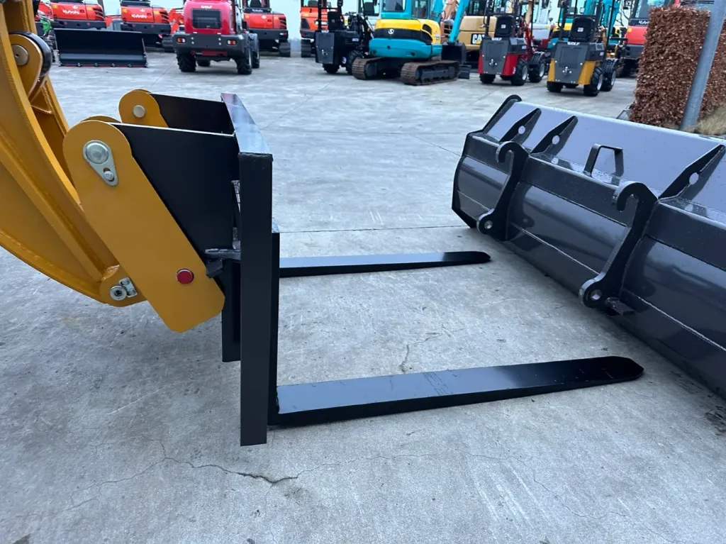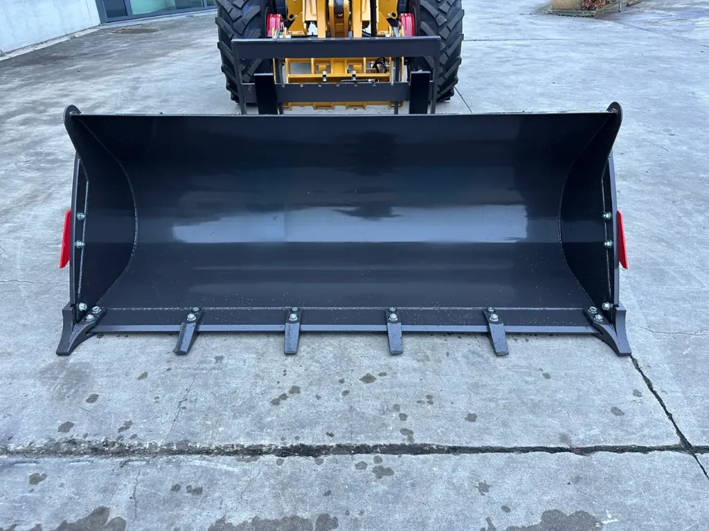 - Equipaggiamento: braccio telescopico, attacco rapido idraulico, carrello portaforche, benna, benne da 1.200 mm, funzione idraulica aggiuntiva, telecamera posteriore, cassetta degli attrezzi