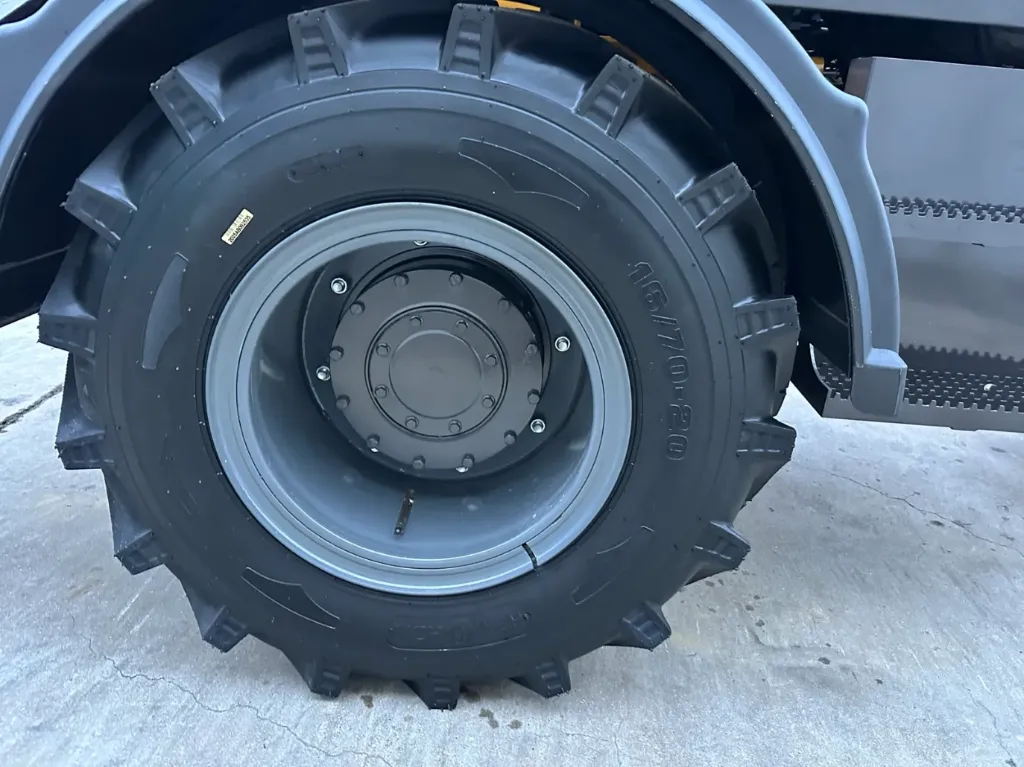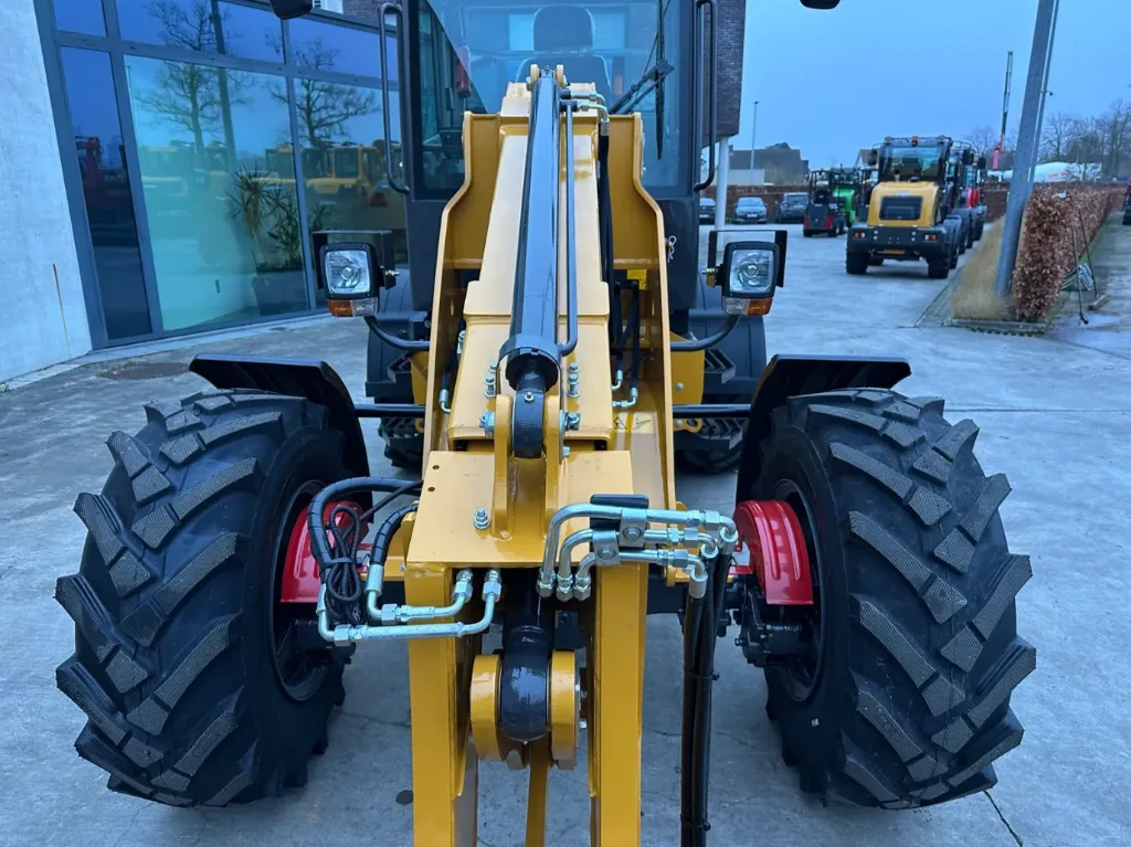 La macchina è equipaggiata con un braccio telescopico, che consente di raggiungere diverse altezze e profondità di lavoro, ed è dotata di attacco rapido idraulico per una sostituzione semplice e veloce delle attrezzature. La dotazione comprende carrello portaforche, benna, benne da 1.200 mm, funzione idraulica aggiuntiva, telecamera posteriore e una robusta cassetta degli attrezzi. La larghezza della benna è di 2.000 mm e i pneumatici 16/70-20 assicurano buona stabilità e ottima manovrabilità su diversi tipi di terreno.